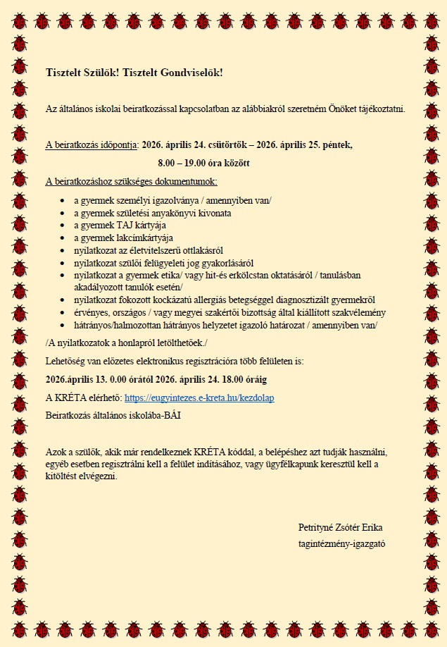 Letölthető Közlemény: Közlemény általános iskolai beíratkozásról #2.pdf